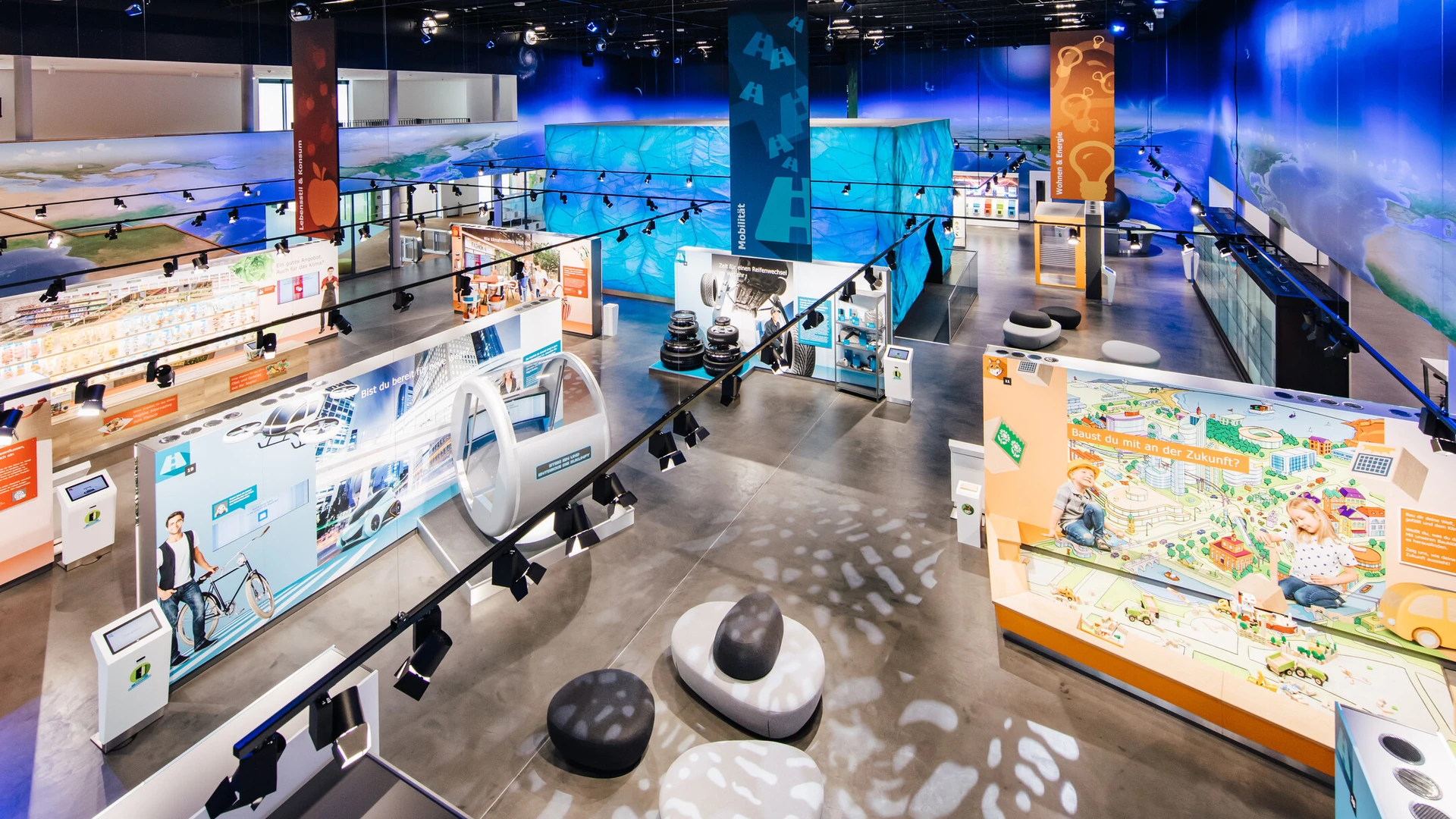 Das Regional Mobility Lab bringt Bewegung in die Mobilitätsdebatte – direkt in der KLIMA ARENA. Im Mittelpunkt stehen zwei große, interaktive Exponate, mit denen Besuchende die ländliche Region spielerisch gestalten sowie ihren eigenen Mobilitätsalltag sichtbar machen können.